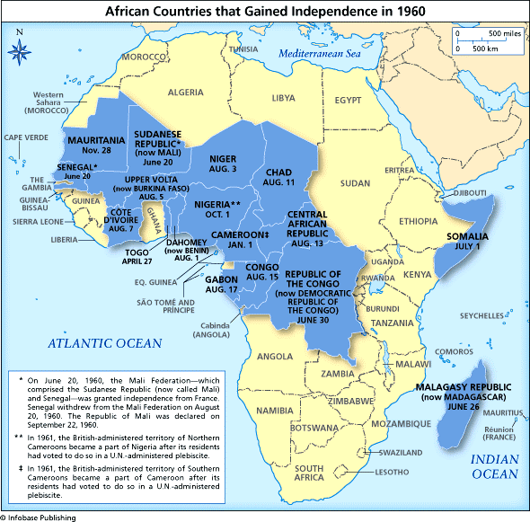 Cameroon (January 1), Togo (April 27), Mali (June 20), Senegal (June 20),